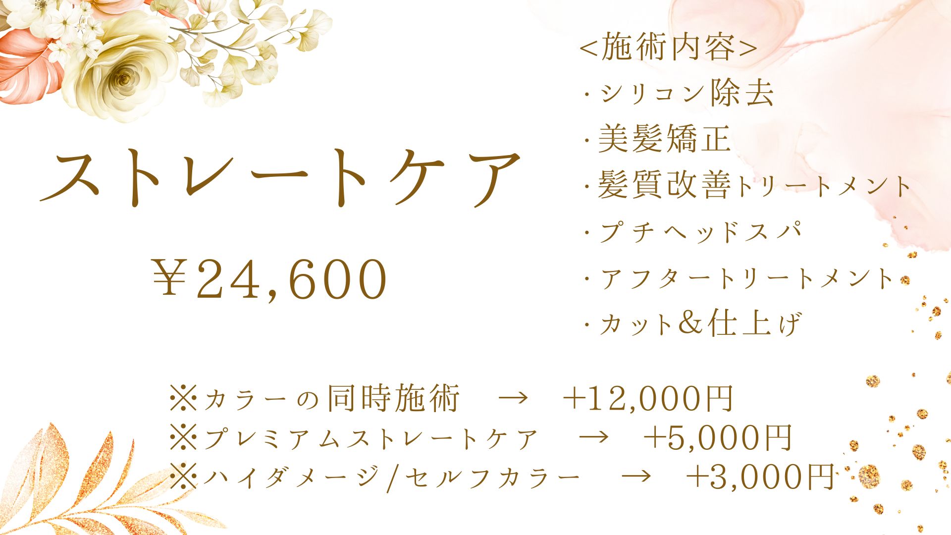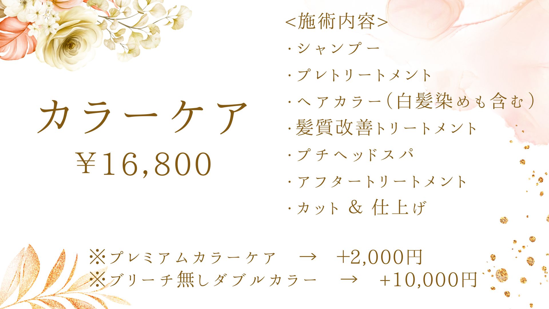 トリートメントを含めたフルコースのご案内になります。髪がきれいになっていくスムーク独自の髪質改善ケアのメニューです。
